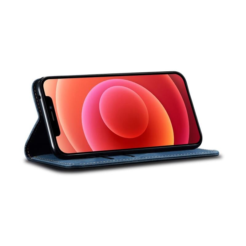 Θήκη τηλεφώνου από δέρμα για iPhone 14 Pro με υφή τζιν, casual στυλ (Μαύρο)