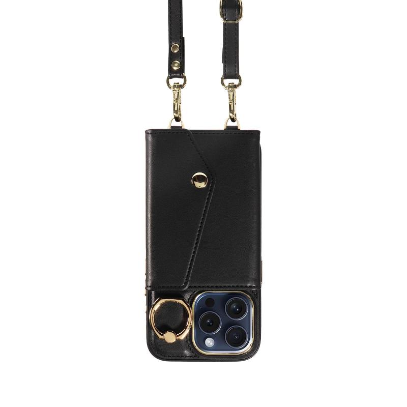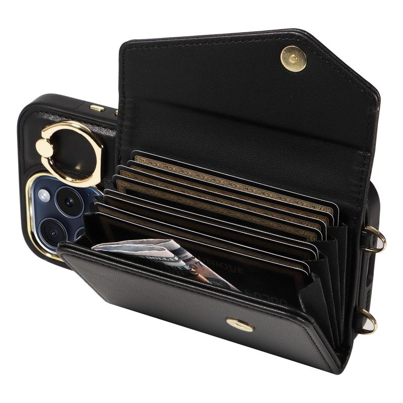 Για iPhone 14 Pro Δερμάτινη Θήκη Ώμου με Λουρί & Οργάνωση (Μαύρο)