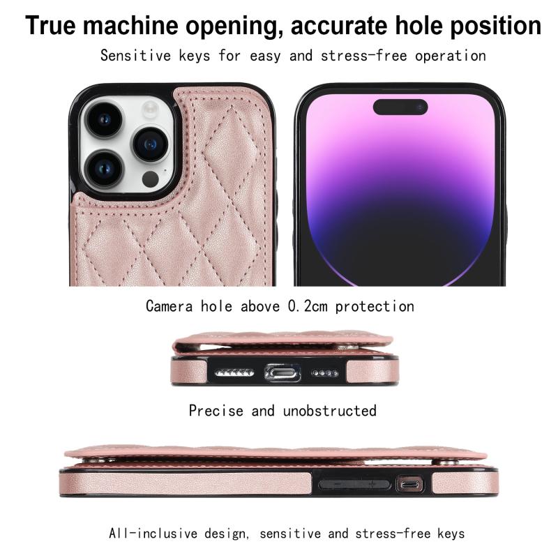 For iPhone 14 Pro Double Buckle Rhombic PU Leather Phone Case(Rose Gold)