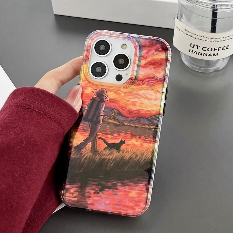 Θήκη τηλεφώνου iPhone 14 Pro με λαμινάρισμα διπλής όψης, ζωγραφική λαδιού IMD (Γέρος και Σκύλος)