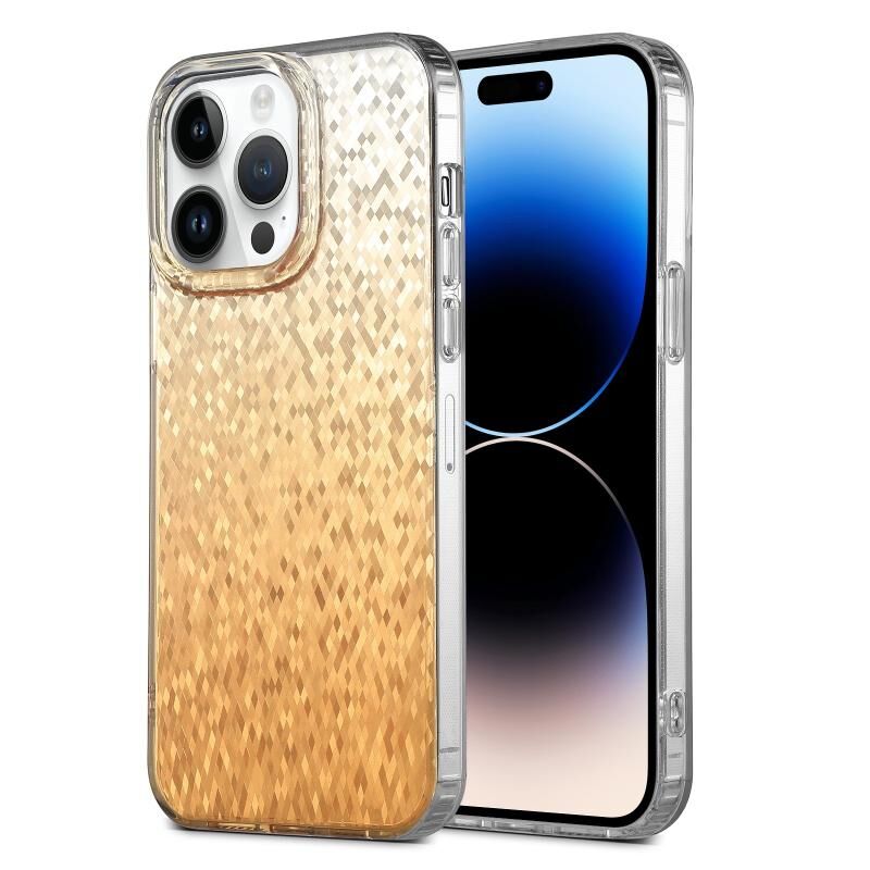 For iPhone 14 Pro Dynamic Colorful Rhombus Diamond Series PC + TPU Phone Case(Gold)