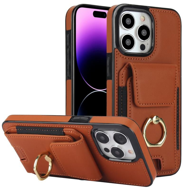 Θήκη τηλεφώνου για iPhone 14 Pro με ελαστική τσέπη για κάρτες και δαχτυλίδι στήριξης (Μωβ)