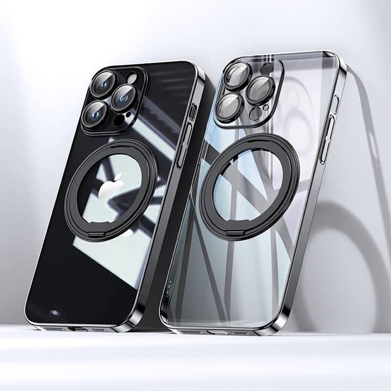 Θήκη τηλεφώνου MagSafe με μαγνητική βάση 360 μοιρών, επιμεταλλωμένη, για iPhone 14 Pro (Διαφανές Μωβ)