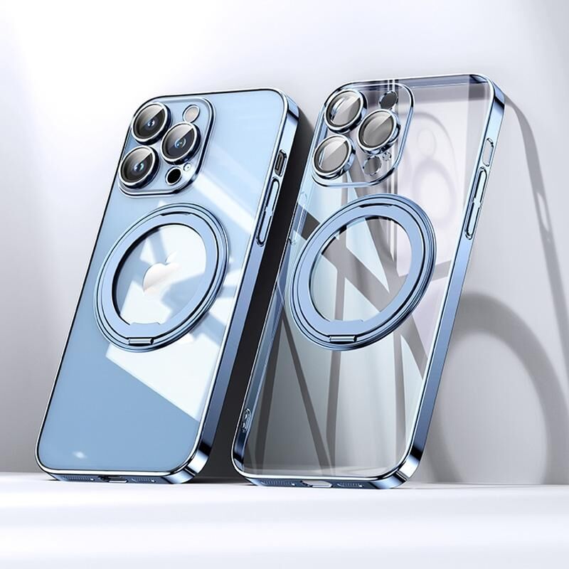 Θήκη τηλεφώνου MagSafe με μαγνητική βάση 360 μοιρών, επιμεταλλωμένη, για iPhone 14 Pro (Διαφανές Μωβ)