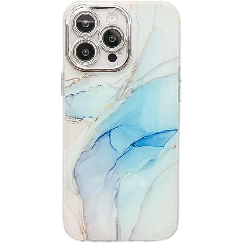 For iPhone 14 Pro Electroplated Marble Texture Phone Case(Light Blue M5)
