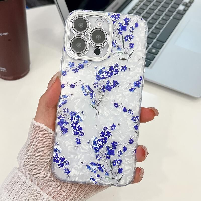 For iPhone 14 Pro Electroplating Flowers Plants Texture TPU Phone Case(Blue Flower FL13)