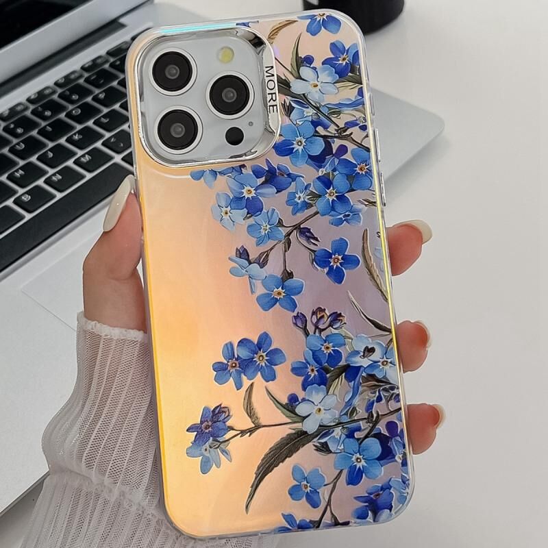 For iPhone 14 Pro Electroplating Laser Flower Texture TPU Phone Case(Myosotis AH2)