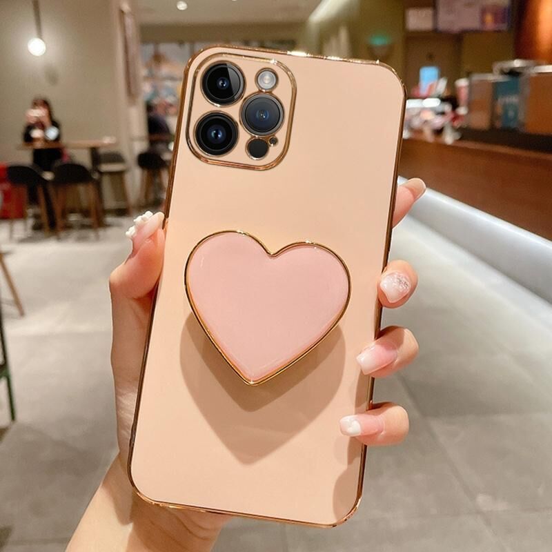 For iPhone 14 Pro Electroplating Love Heart Holder TPU Phone Case(Pink)