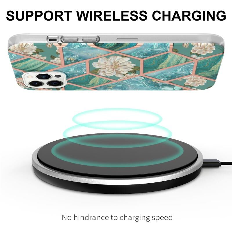 Θήκη για iPhone 14 Pro με ηλεκτρολυτική επιμετάλλωση, συνδυασμό μαρμάρου και λουλουδιών, από TPU ανθεκτική στις κρούσεις (Μαύρο Λουλούδι)