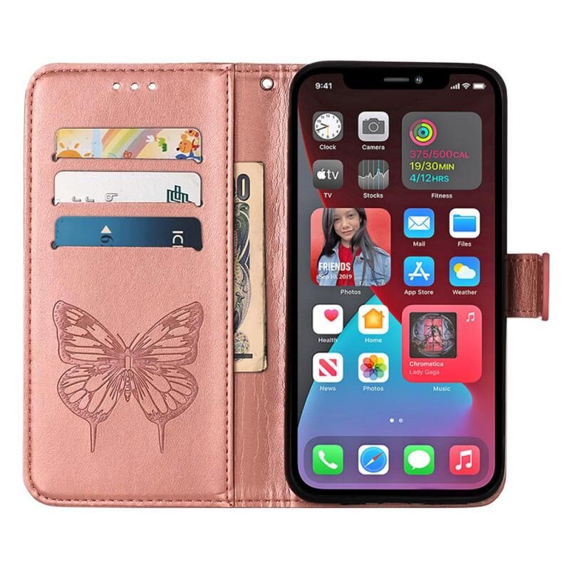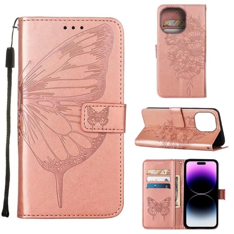 Θήκη τηλεφώνου από δέρμα με ανάγλυφο σχέδιο πεταλούδας για iPhone 14 Pro (Ανοιχτό Μωβ)