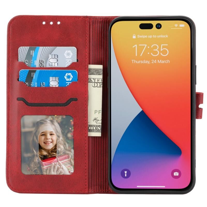 Θήκη τηλεφώνου από δέρμα με σχέδιο χαρούμενης γάτας σε ανάγλυφο για iPhone 14 Pro (Κόκκινο)