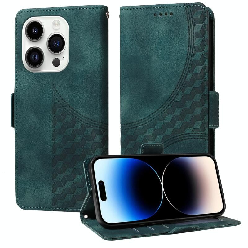 Θήκη τηλεφώνου από δέρμα με ανάγλυφο ρόμβο και αστρικό σχέδιο για iPhone 14 Pro (Πράσινο)