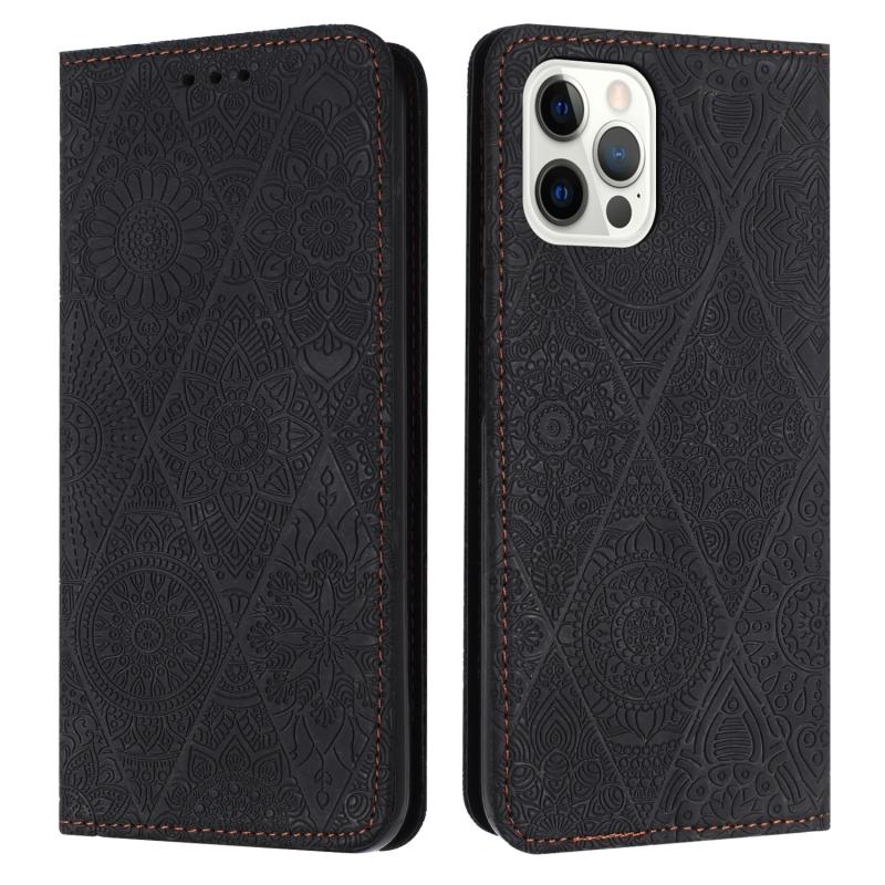 For iPhone 14 Pro Ethnic Embossed Adsorption Leather Phone Case(Black)