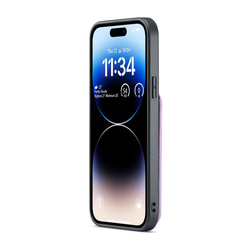 For iPhone 14 Pro Fierre Shann Crazy Horse Card Holder Back Cover PU Phone Case(Purple) (FIERRE SHANN)