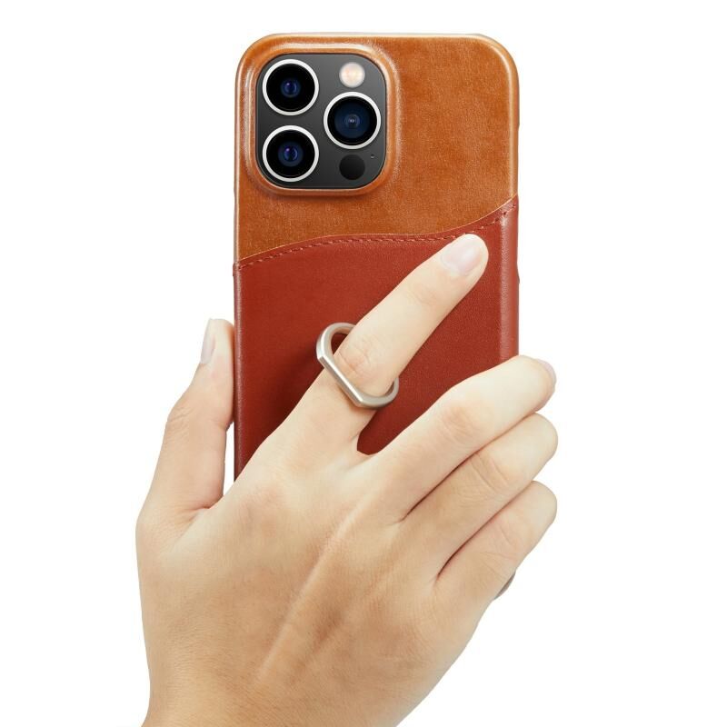 For iPhone 14 Pro Fierre Shann Oil Wax Texture Genuine Leather Back Case(Brown) (FIERRE SHANN)