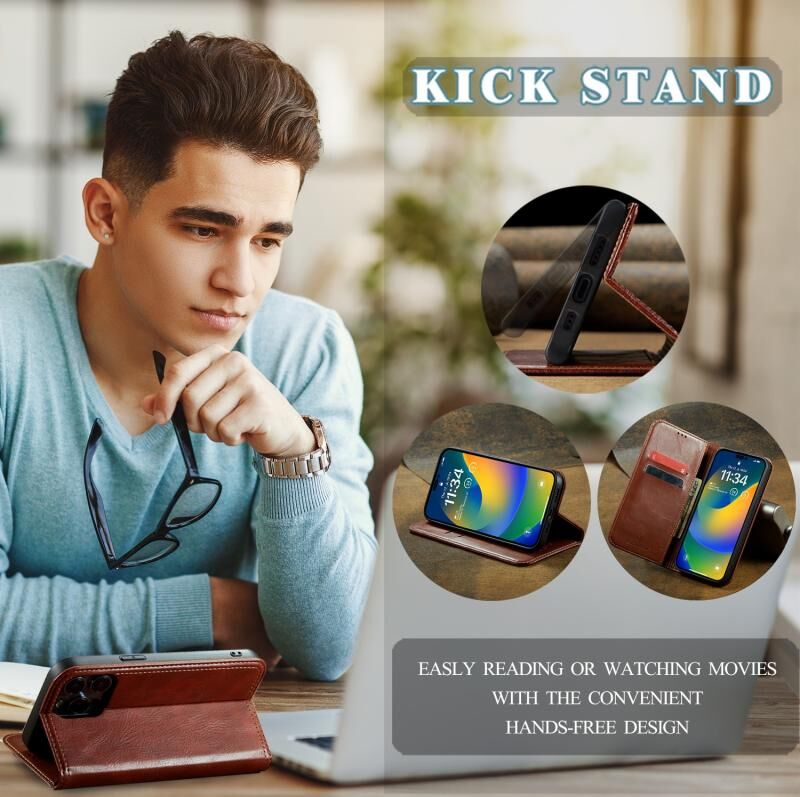 Θήκη κινητού τηλεφώνου FIERRE SHANN Vintage Bark Texture Wallet από δέρμα για iPhone 14 Pro (Καφέ) (FIERRE SHANN)