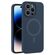 For iPhone 14 Pro Fine Hole Pure Color Liquid Silicone MagSafe Phone Case(Navy Blue)