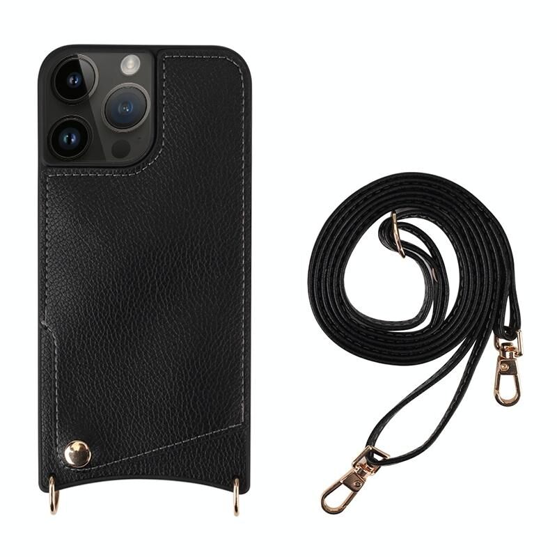 Θήκη κινητού τηλεφώνου για iPhone 14 Pro με κάρτα σε σχήμα ουράς ψαριού, PU + TPU, με μακρύ κορδόνι (Σκούρο Μπλε)