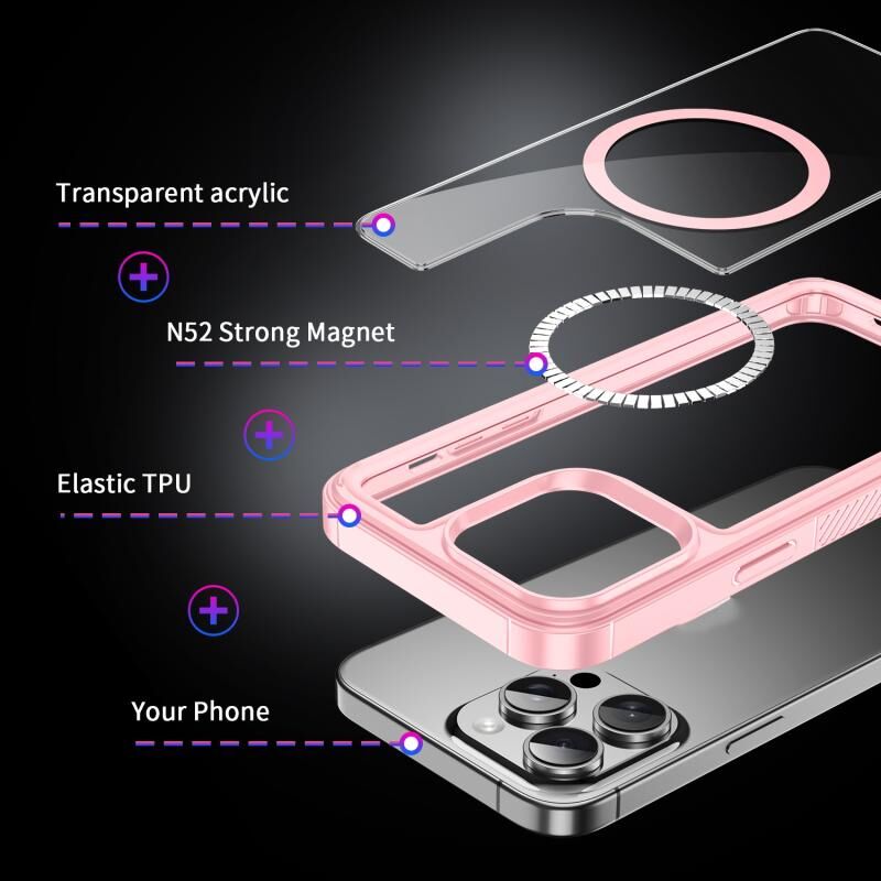 Θήκη τηλεφώνου για iPhone 14 Pro, ανθεκτική στις κρούσεις, υβριδική από ακρυλικό και TPU, με MagSafe (Κόκκινη)