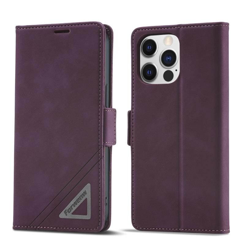 Θήκη τηλεφώνου δερμάτινη με διπλή αγκράφα Forwenw για iPhone 14 Pro (Μαύρο) (Forwenw)