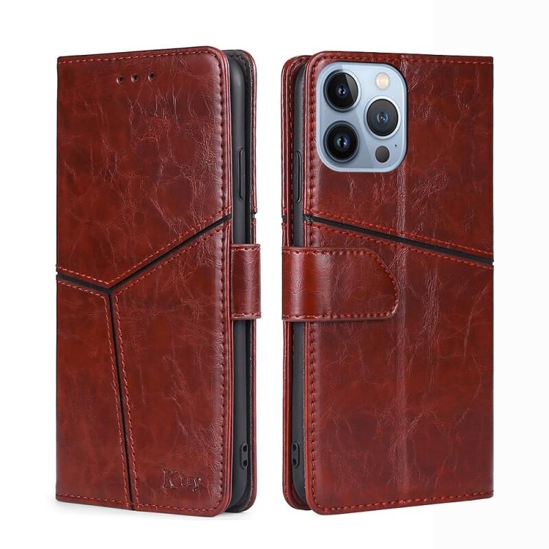 Θήκη τηλεφώνου από δέρμα με γεωμετρική ραφή για iPhone 14 Pro (Σκούρο Καφέ)