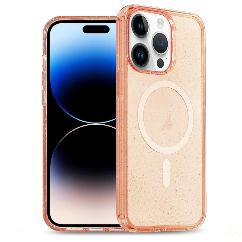 For iPhone 14 Pro Glitter Powder TPU Hybrid PC MagSafe Phone Case(Orange)
