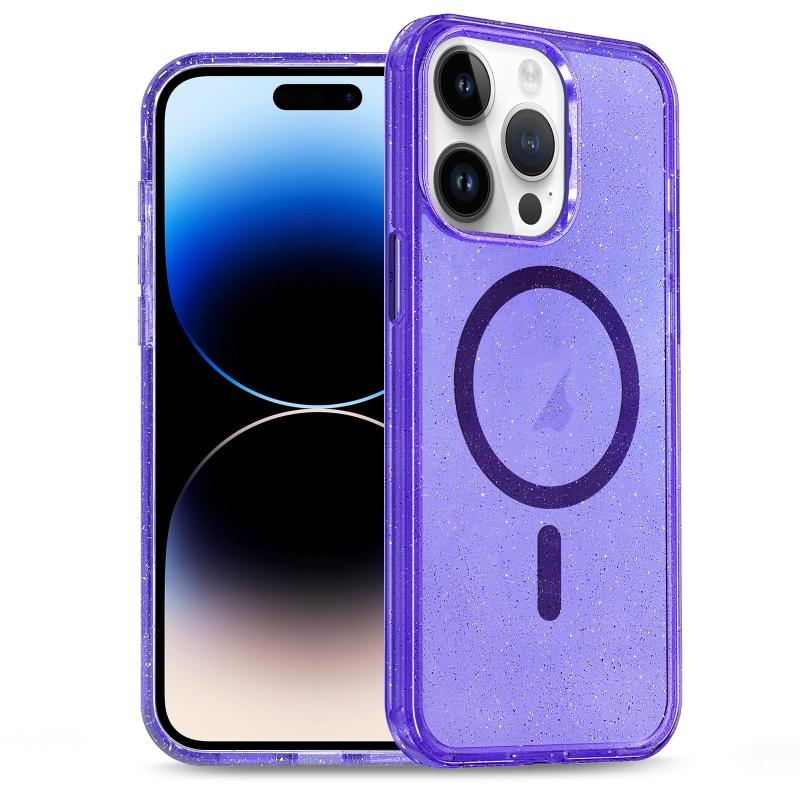 Θήκη τηλεφώνου για iPhone 14 Pro, υβριδική από TPU και PC με MagSafe και λάμψη (Μωβ)