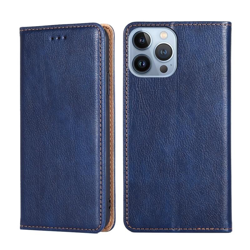 Θήκη τηλεφώνου μαγνητική από δέρμα με γυαλιστερό λάδι και συμπαγή χρώματα για iPhone 14 Pro (Πράσινο)