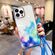 For iPhone 14 Pro Gold Halo Marble Pattern Lanyard Phone Case(Blue)