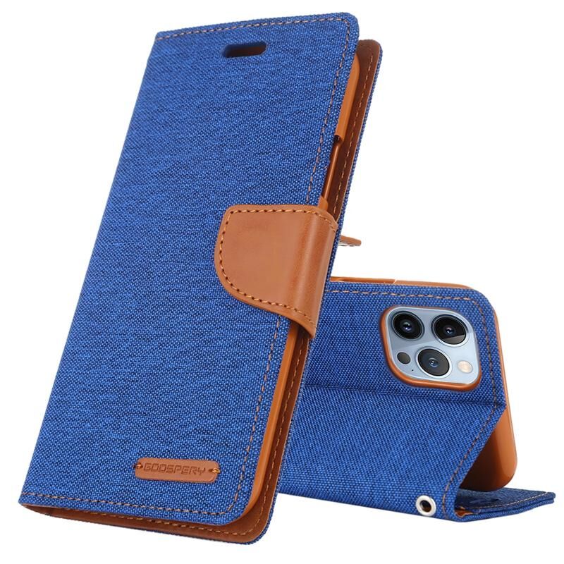 Θήκη τηλεφώνου GOOSPERY CANVAS DIARY με υφή καμβά και αναδιπλούμενο δέρμα για iPhone 14 Pro (Κόκκινο) (GOOSPERY)