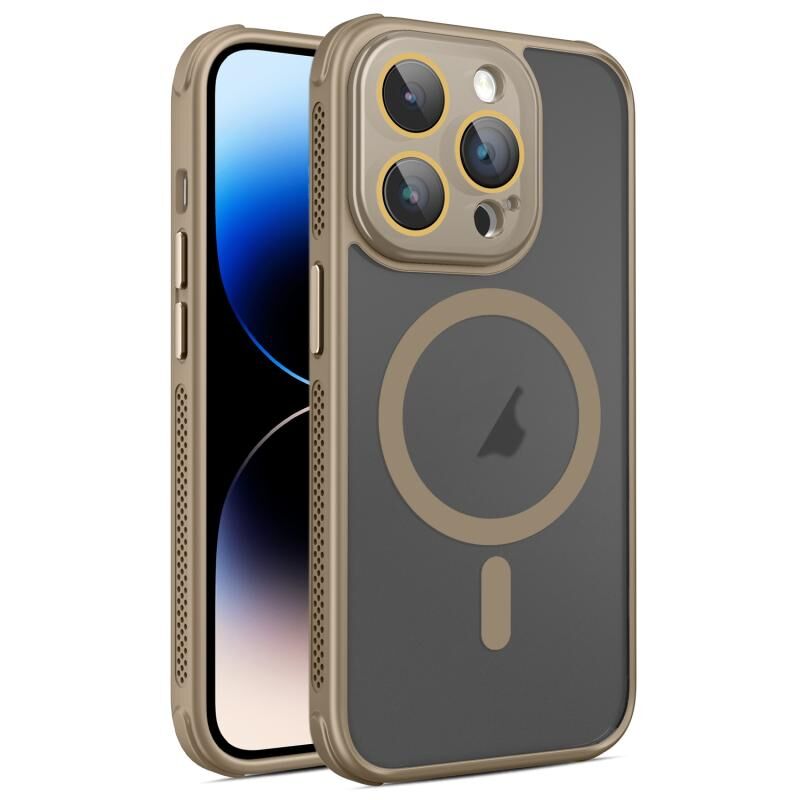 For iPhone 14 Pro Hardware Side Cooling Skin Feel Frosted MagSafe Magnetic Phone Case with Lens Film(Gold)