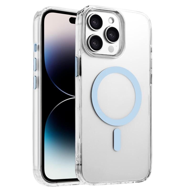 For iPhone 14 Pro High Transparency TPU Hybrid PC MagSafe Magnetic Phone Case(Sky Blue)