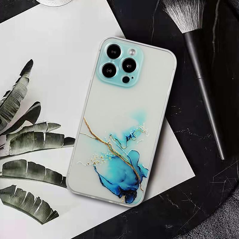 Θήκη προστασίας για iPhone 14 Pro, από TPU με σχέδιο κοίλου μαρμάρου, ευθείες άκρες και λεπτές οπές (Κίτρινο-Μπλε)