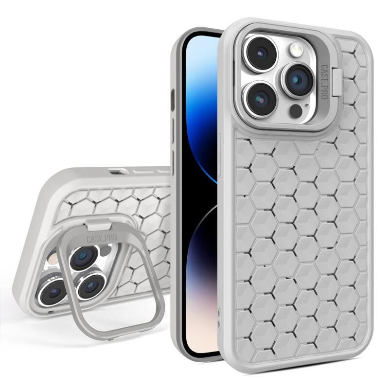 For iPhone 14 Pro Honeycomb Radiating Lens Holder Magsafe Phone Case(Grey)