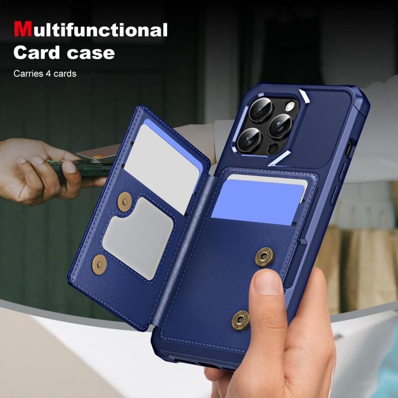 For iPhone 14 Pro Horizontal Flip Card Bag Holder Leather Phone Case(Dark Blue)