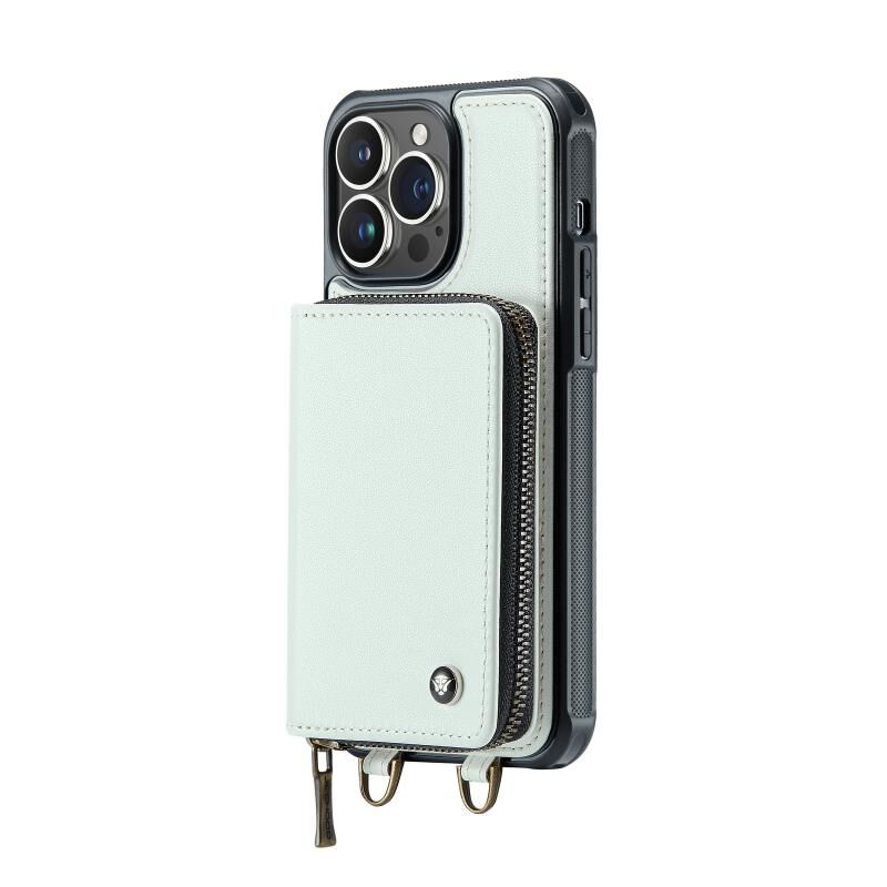 Θήκη τηλεφώνου JEEHOOD C22 Series με φερμουάρ και λουρί (μακρύ και κοντό) για iPhone 14 Pro (Κόκκινο) (JEEHOOD)
