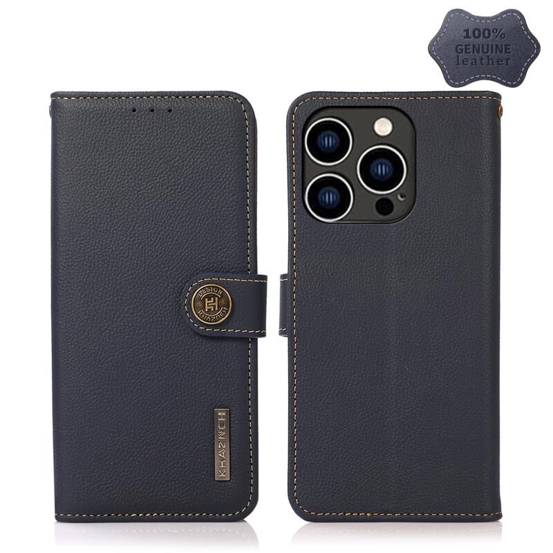 Θήκη τηλεφώνου KHAZNEH Custer από γνήσιο δέρμα με προστασία RFID για iPhone 14 Pro (Μαύρο)