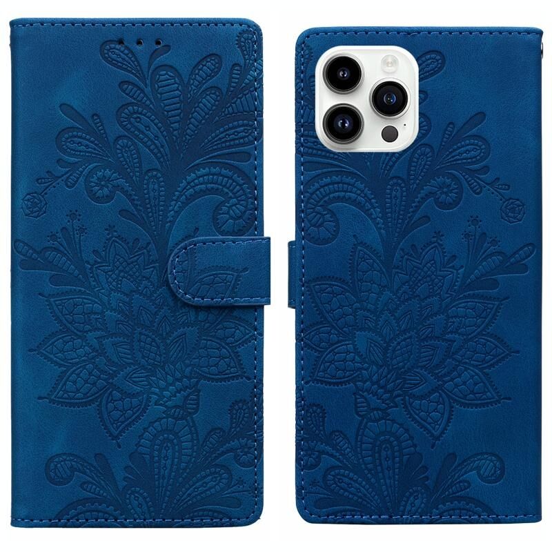 Θήκη τηλεφώνου για iPhone 14 Pro με δαντέλα, λουλουδάτο ανάγλυφο, μαγνητικό κούμπωμα και λουρί καρπού (Πράσινο)
