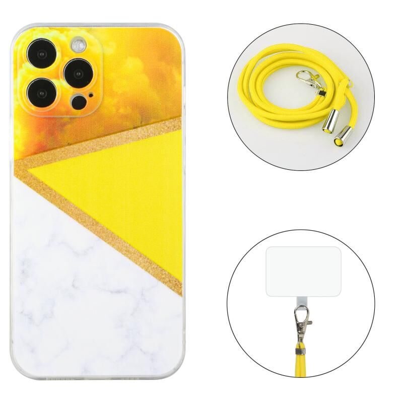 Θήκη για iPhone 14 Pro με Λουρί, Ραφές, από TPU με σχέδιο Μάρμαρου (Ροζ)