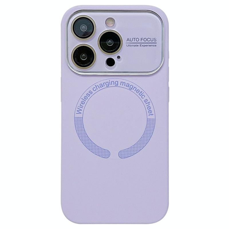 For iPhone 14 Pro Large Window Acrylic Glass Lens MagSafe Silicone Phone Case(Lilac)