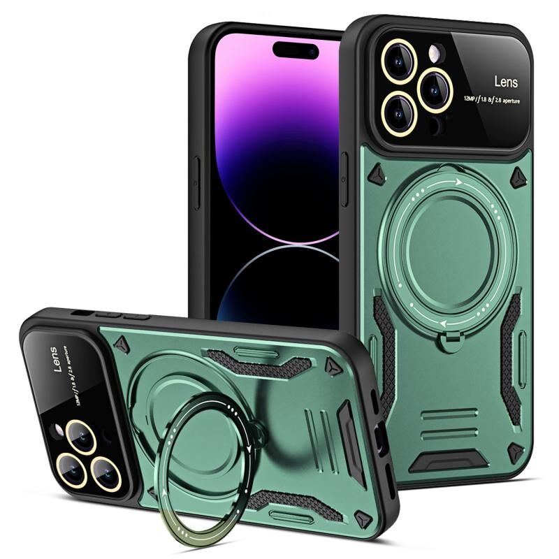 For iPhone 14 Pro Large Window MagSafe Holder Phone Case(Green)
