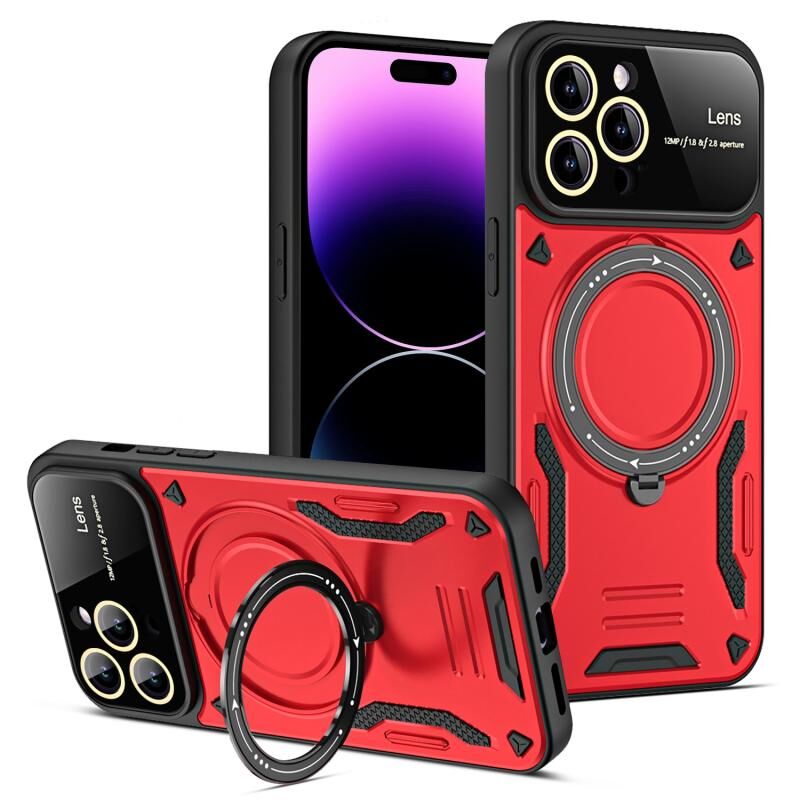 For iPhone 14 Pro Large Window MagSafe Holder Phone Case(Red)