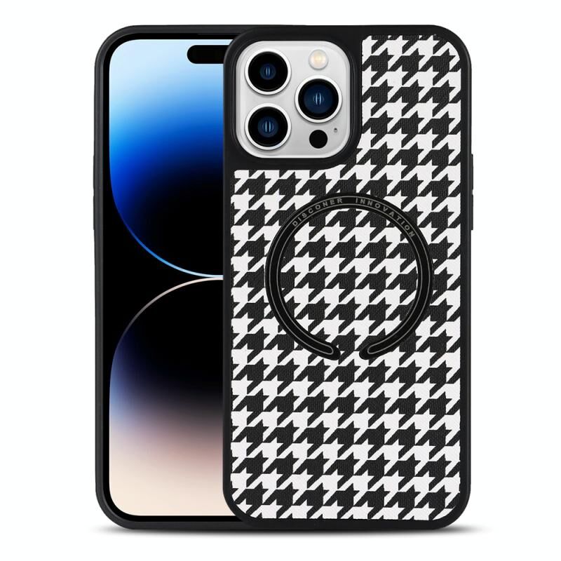 For iPhone 14 Pro Leather Texture MagSafe Magnetic Phone Case(Houndstooth)