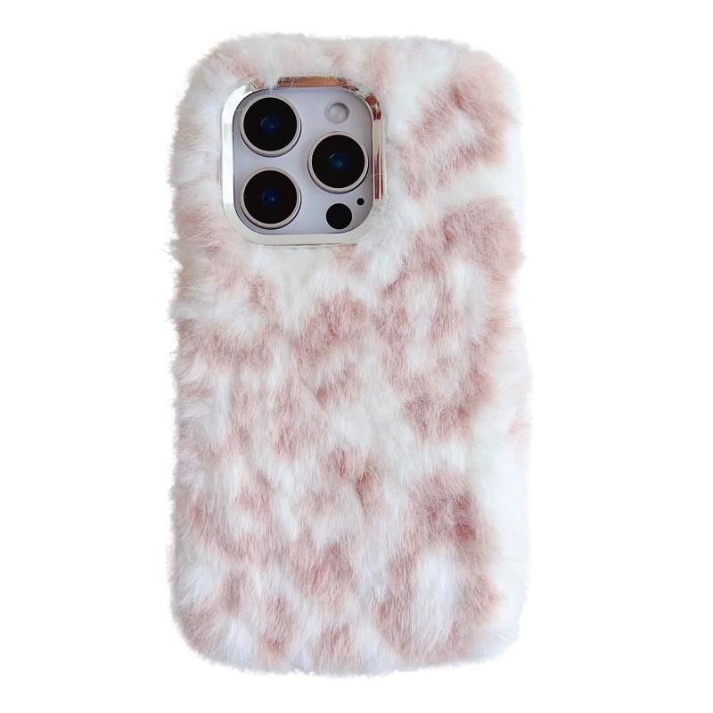 For iPhone 14 Pro Leopard Print Plush TPU Phone Case(Pink)