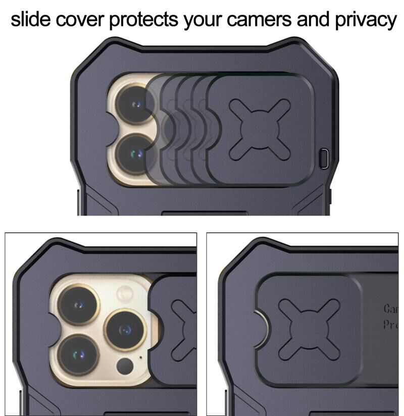 For iPhone 14 Pro Life Waterproof Camshield Tri-poof Metal Phone Case with Holder(Black)