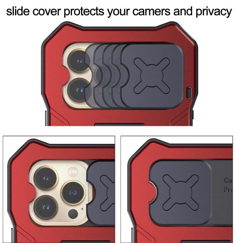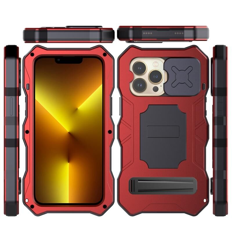 For iPhone 14 Pro Life Waterproof Camshield Tri-poof Metal Phone Case with Holder(Red)
