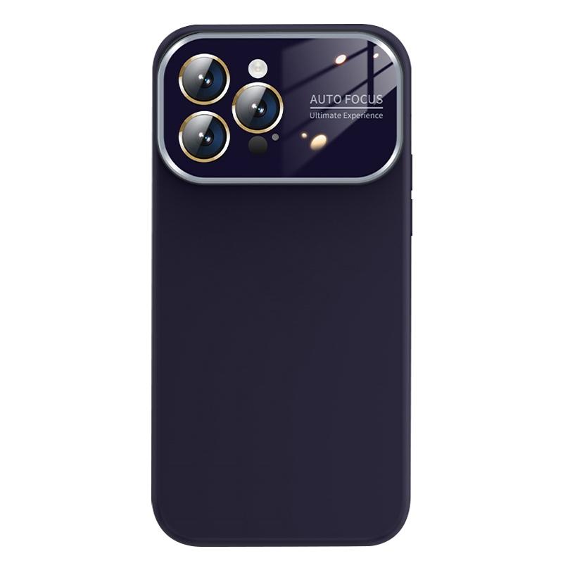 For iPhone 14 Pro Liquid Silicone Large Glass Window Phone Case(Deep Purple)