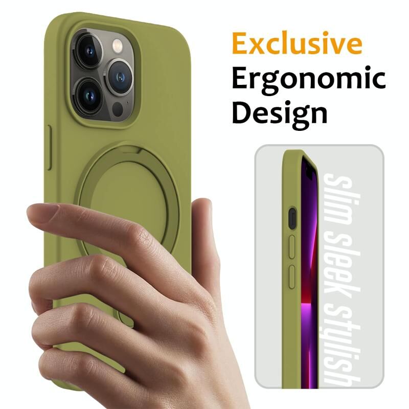 Θήκη τηλεφώνου για iPhone 14 Pro από υγρή σιλικόνη με μαγνητική σύνδεση MagSafe και δακτύλιο στήριξης (Λευκό)