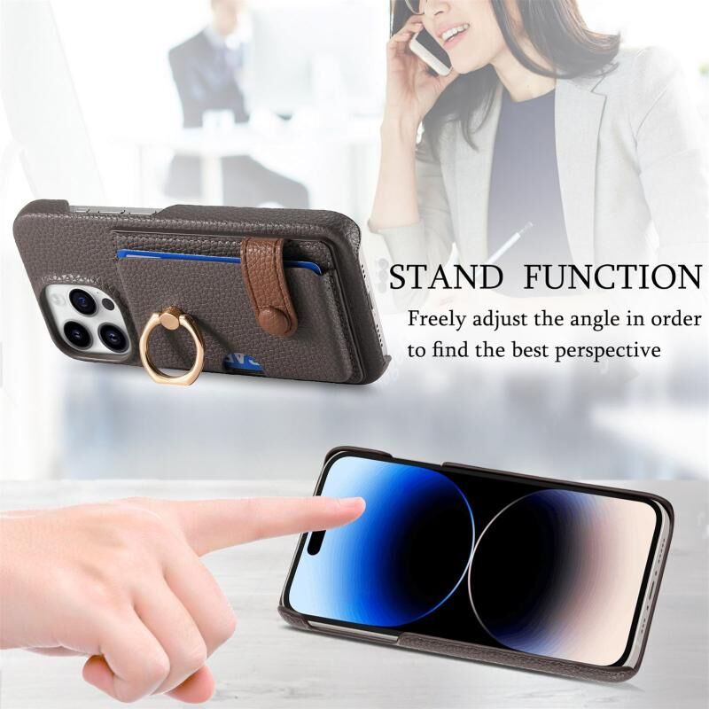 Θήκη κινητού τηλεφώνου για iPhone 14 Pro από δέρμα Litchi με λεπτή άκρη και θήκη για κάρτες στην πλάτη (Καφέ)