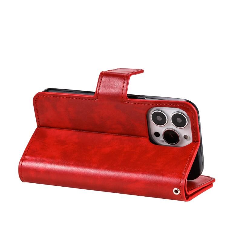 Θήκη τηλεφώνου από δέρμα με υφή λύτσι για iPhone 14 Pro, τριπλή θήκη πορτοφολιού με 9 θέσεις για κάρτες (Κόκκινο)